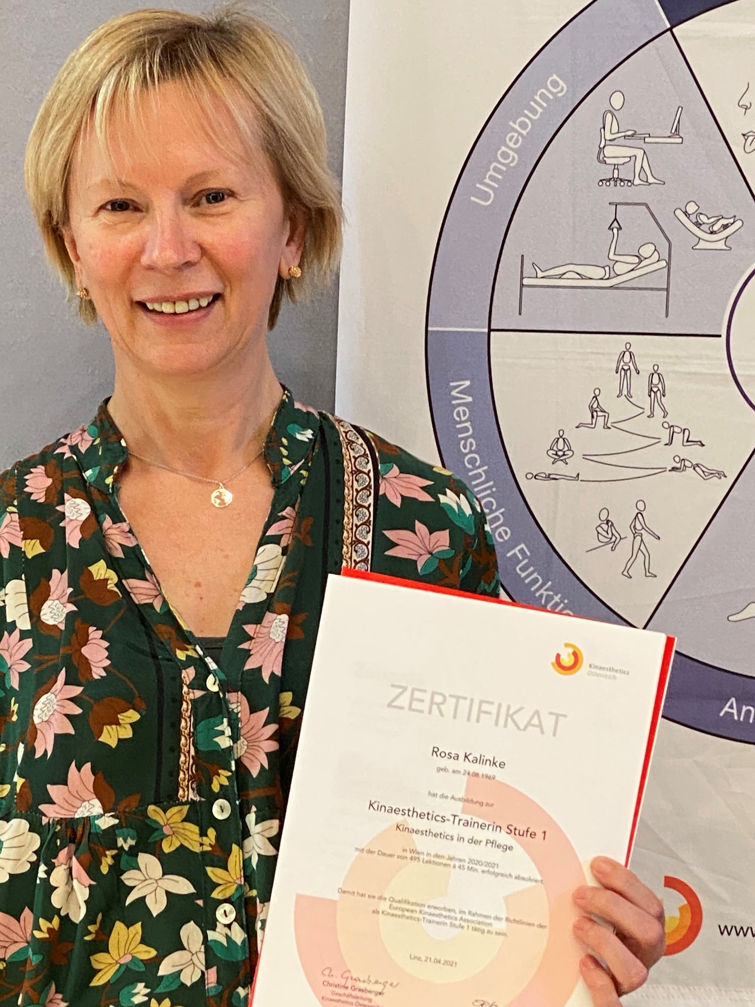 Die Kinaesthetics-Auszeichnung der European Kinaesthetics Association wird im März 2022 zum dritten Mal feierlich verliehen. Diesen hohen Level konnte in Österreich bis jetzt noch keine Einrichtung so lange halten und sogar weiterentwickeln. Mit Sicherheit darf man sagen, dass die beiden Kliniken ein Leuchtturm und Beispiel für andere Einrichtungen sind.